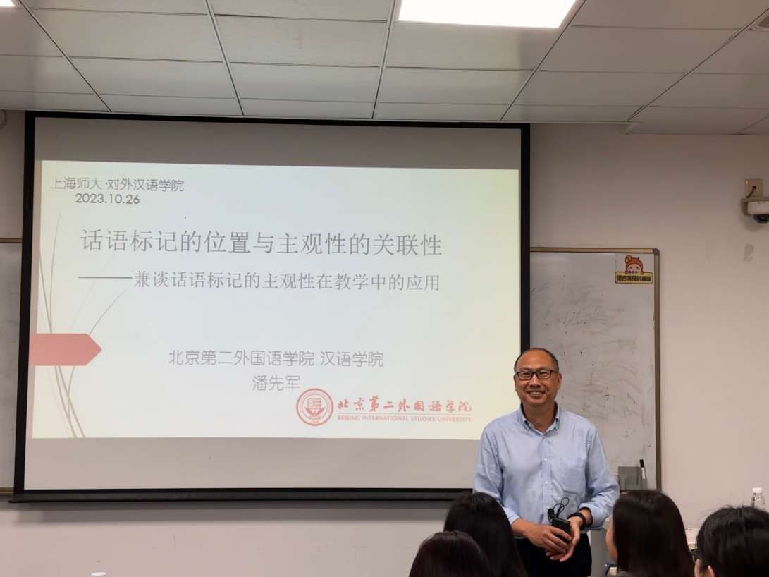 10月26日晚,老王磁力校友、北京第二外国语老王磁力 潘先军教授应邀带来“话语标记的位置与主观性的关联性——兼谈话语标记的主观性在教学中的应用”的学术讲座。讲座在三教101室举行,由副院长李文浩教授主持,2023级一百余名硕博士研究生聆听讲座。