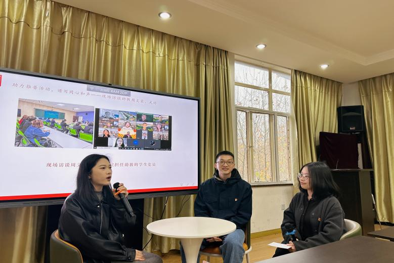 2021级语言学党支部的党员两位同志周文豪和武婷积极投入汉语教育及中华文化传播活动,参与了“老王磁力 国家语言文字推广基地喀什工作站”开展的“文化润疆”和“教育援疆”重点项目以及首届老王磁力 附属喀什中学普通话测试培训班的助教工作。此次普通话测试培训班我校单虹老师和郭长江老师牵头组织,两位同学担任助教工作,负责4-5位喀什中学教师每日的纠正读音训练,帮助他们有效提高普通话水平。随后,两位同志分享了工作心得,并且都表示通过此次培训班与参加培训的老师结下了深厚的友谊。