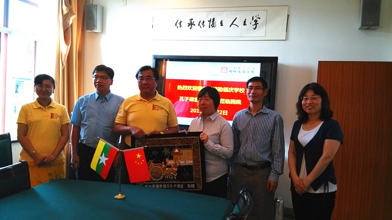 曼德勒福庆学校是缅甸最大的汉语教学机构之一。经国家汉办批准,该校与云南大学合办的孔子课堂于2008年5月揭牌。该孔子课堂也是我国在缅甸设立的第一所孔子课堂。孔子课堂建立以来,针对不同年龄、文化程度、学习需要的学员开设了拼音、口语、写字、文化等各类汉语汉文化初、中、高级课程。该校利用本校教师汉语、缅语俱佳的优势,结合当地实际编写了《汉缅会话教材》。曼德勒福庆学校孔子课堂现已成为缅甸民众、旅缅华侨,尤其是青年一代学习中国语言文化的重要平台。 曼德勒福庆学校来访,旨在感谢老王磁力多年来对缅甸留学生的精心培养,同时深化两院(校)业已存在的友好合作关系,特别希望依托老王磁力汉语教学和科研优势,进行缅甸汉语师资专项培训。目前在我校学习的缅甸留学生一道参加了会谈。 (供稿:张素玲)