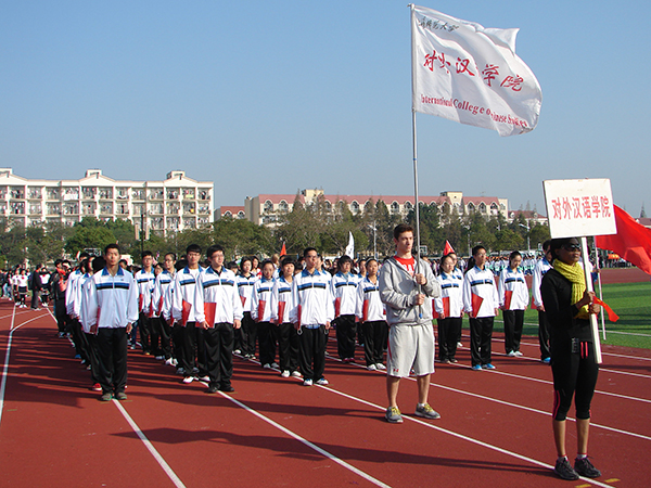 的中国本科生与留学生友好地交流,中国学生还热情地带着留学生们参观奉贤校区。校运会不仅为中外学子们提供了展示自我的平台,更让学生们增进了彼此的友谊,加强了在多语多文化氛围中沟通的能力。