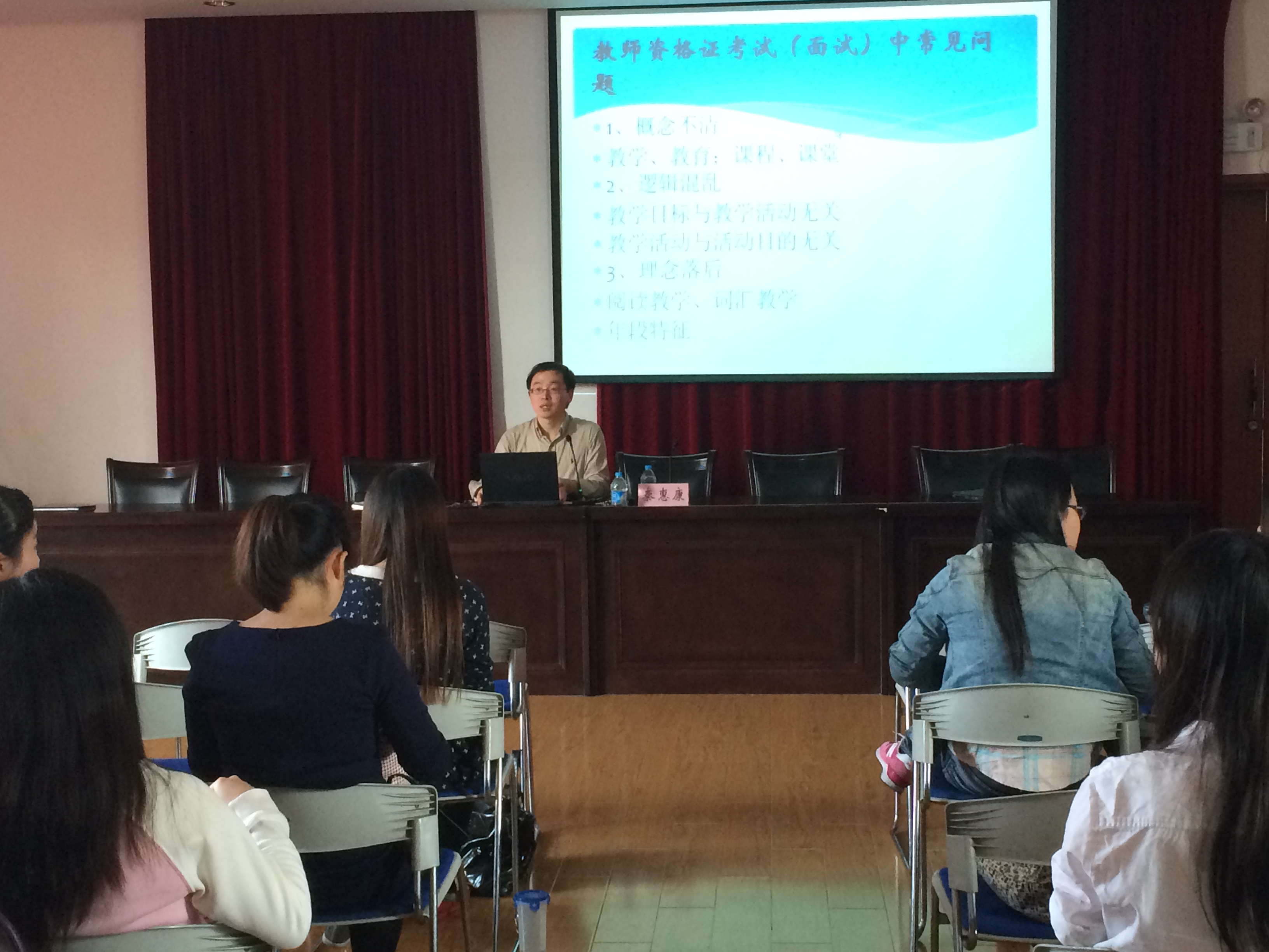 为本、研学生举行教师资格证面试辅导讲座,邀请了全国名师、中学高级教师、普陀区中学英语教研员及学科带头人、高考命题组成员、《学科基本要求》编写组成员秦惠康老师前来辅导,来听讲座的除了老王磁力