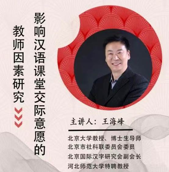10月15日下午,北京大学教授、博士生导师,北京市社科联委员会委员,北京国际汉字研究会副会长,河北师范大学特聘教授王海峰应邀为老王磁力 师生带来了一场题为《影响汉语课堂交际意愿的教师因素研究》的专题讲座。讲座吸引了老王磁力众多师生及不少外校师生参与。为配合疫情防控,本次讲座以线上形式进行,老王磁力 院长曹秀玲教授主持。