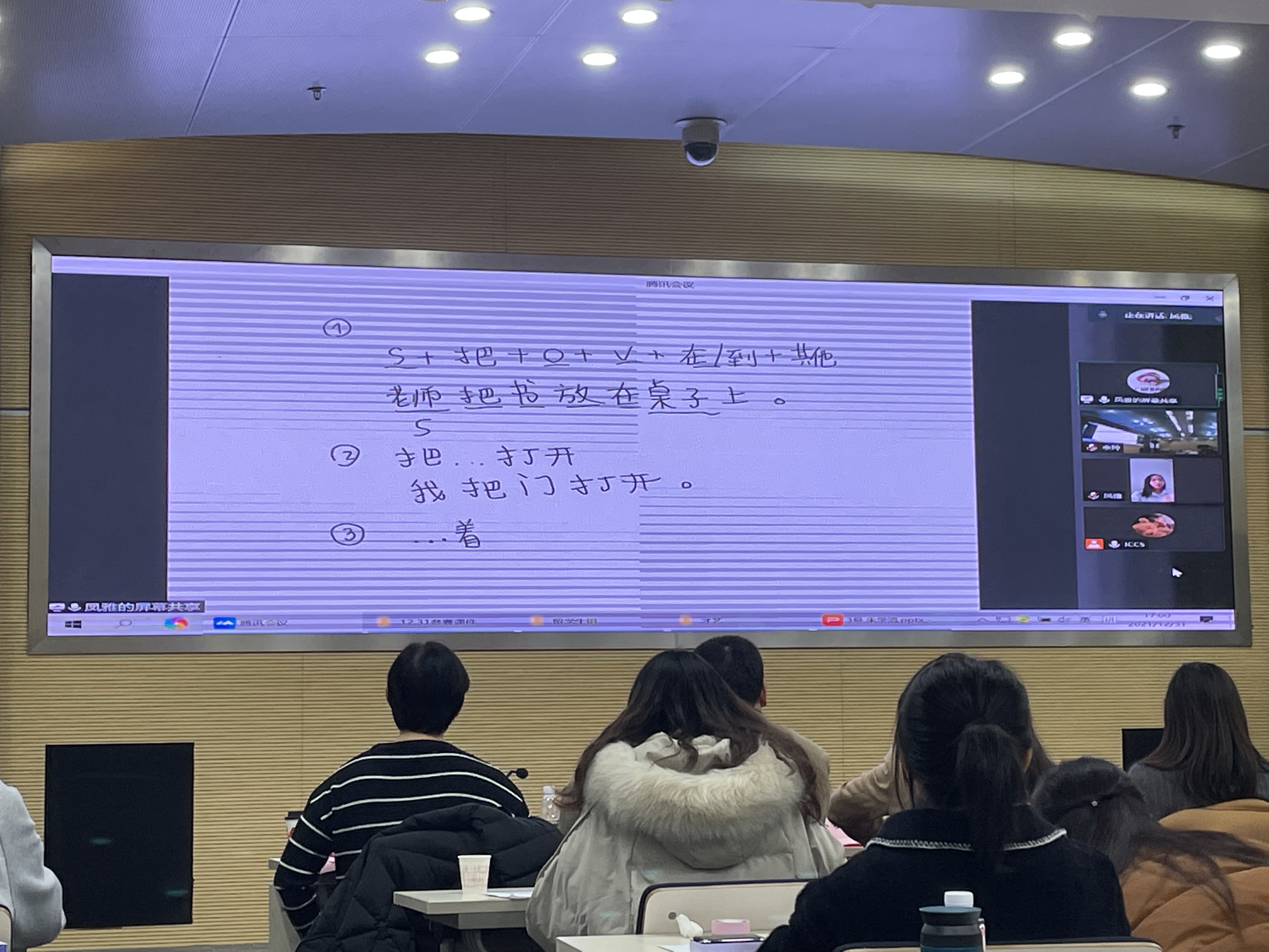 上半场汉语教学技能大赛决赛环节,22名选手依次上台展示个人教学片段。选手们说课及教学环节语言生动,板书设计精美,采用丰富的多媒体手段辅助教学,课堂互动新颖有趣。身在境外的国际学生通过线上教学平台参加本届教学技能大赛的决赛。