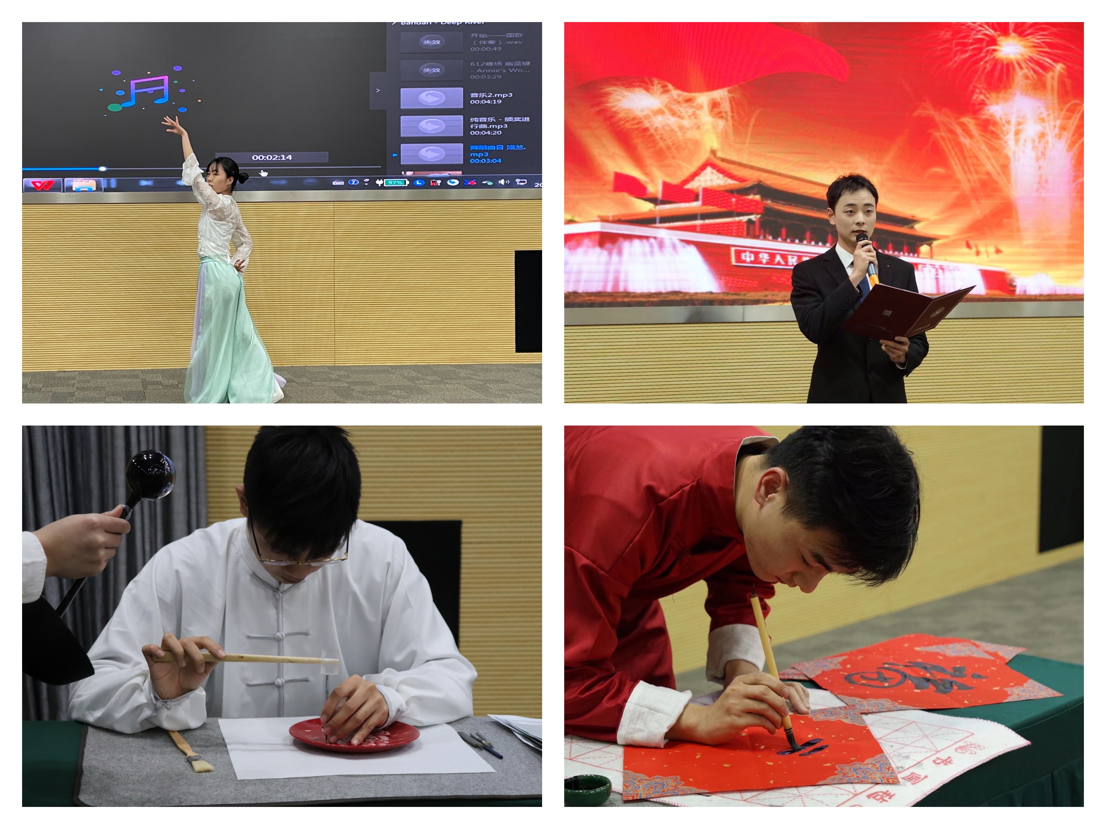 下半场才艺大赛环节,6名参赛选手依次上台表演传统舞蹈、长笛、刻瓷、书法等中华才艺,充分展示汉语国际教育专业硕士研究生多才多艺的一面。
