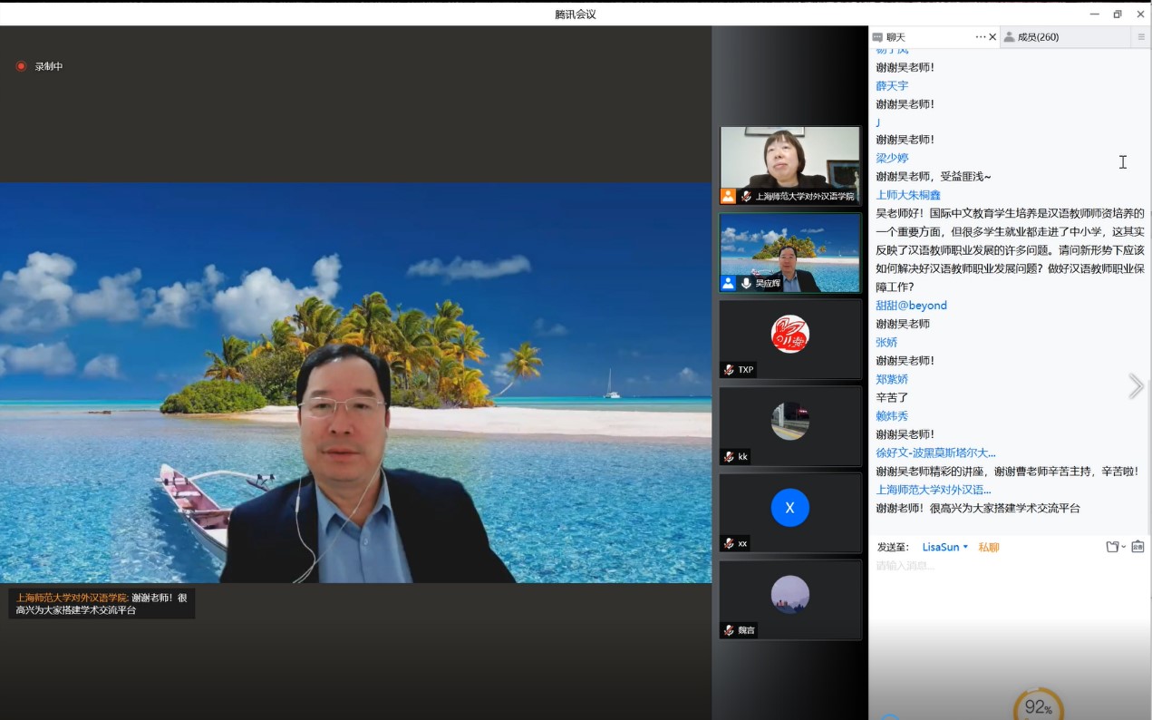 吴应辉教授的讲座,聚焦新时代国际中文教育的新动态、新领域和新方法,展望后疫情时代国际中文教育的大发展,视野开阔,内容丰富,见解深刻。讲座既有理论与研究方法的解读,又有研究案例的分享。本次讲座拓宽了师生们的研究视野,深化了大家对新时代和后疫情时代国际中文教育的认识。同时,对于研究生同学的专业学习、论文撰写、择业就业等都具有重要的指导作用。