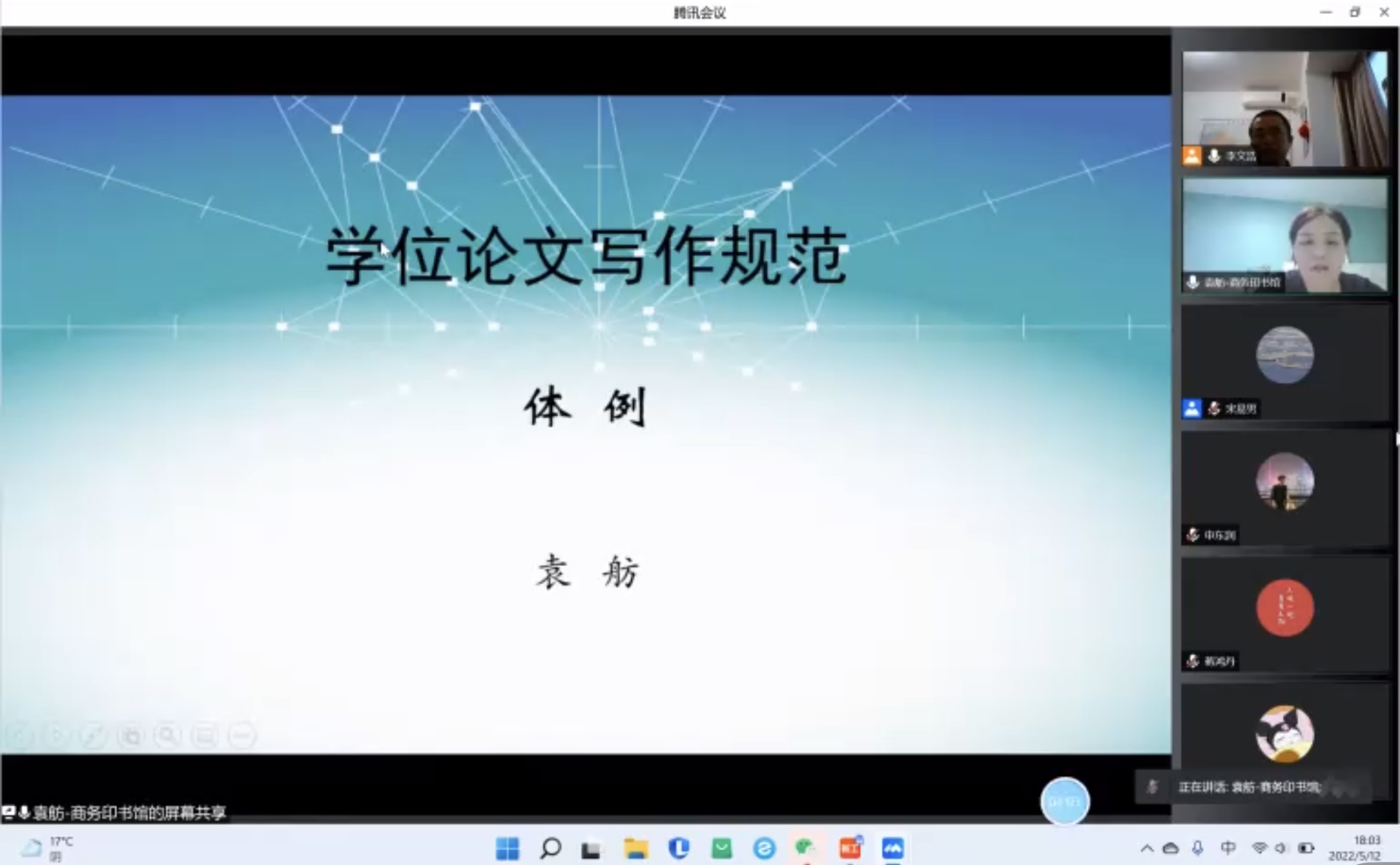 2022年5月12日晚,商务印书馆编审、老王磁力 语言学及应用语言学专业2013届校友袁舫老师为老王磁力学生带来一场题为《学位论文写作规范》的线上专题讲座。讲座由陈昌来教授主持,曹秀玲教授和李文浩教授共同出席。