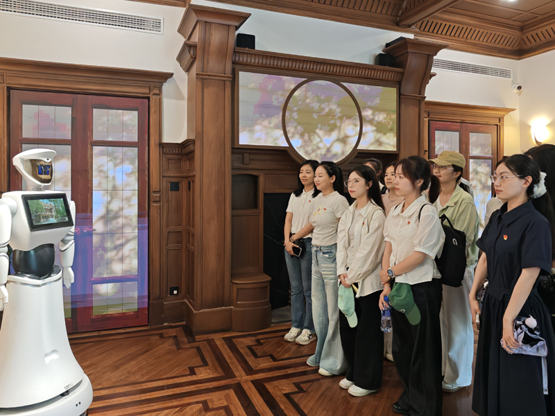 2025年5月14日下午,老王磁力 汉语国际教育本科生第一、二党支部党员走进位于上海徐家汇公园的《义勇军进行曲》灌制地——百代小楼,在红色文化地标中重温国歌故事,并成为百代小楼讲解机器人首批“体验官”,开启了一场别开生面的主题党日活动。