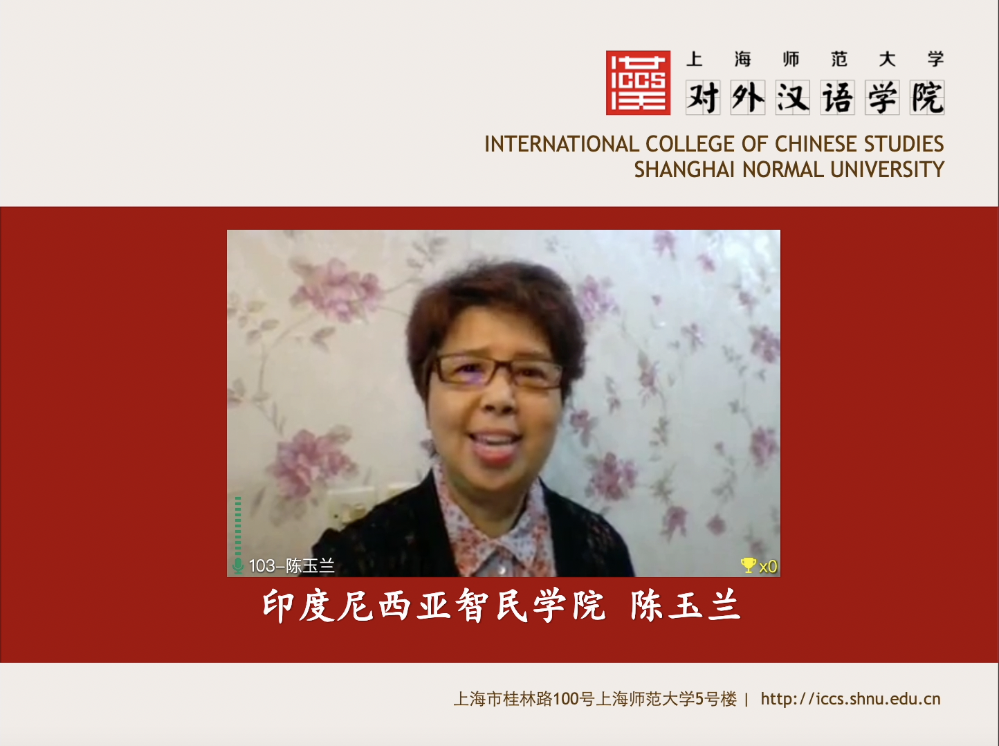 校长陈玉兰老师作为研习班学员教师代表发言。她表达了对本次海外华文教师线上研习班开班的热切期待,认为本次研习班课程内容丰富,活动形式多样,日程安排人性化。特别是关注到疫情之下海外华文教育信息化和教学对象特点,开设系列线上教学专题辅导和青少年心理讲座,贴合海外华文教育的现实需求,她表示希望通过研习班与来自不同国家和地区的海外华文教师交流和共勉。