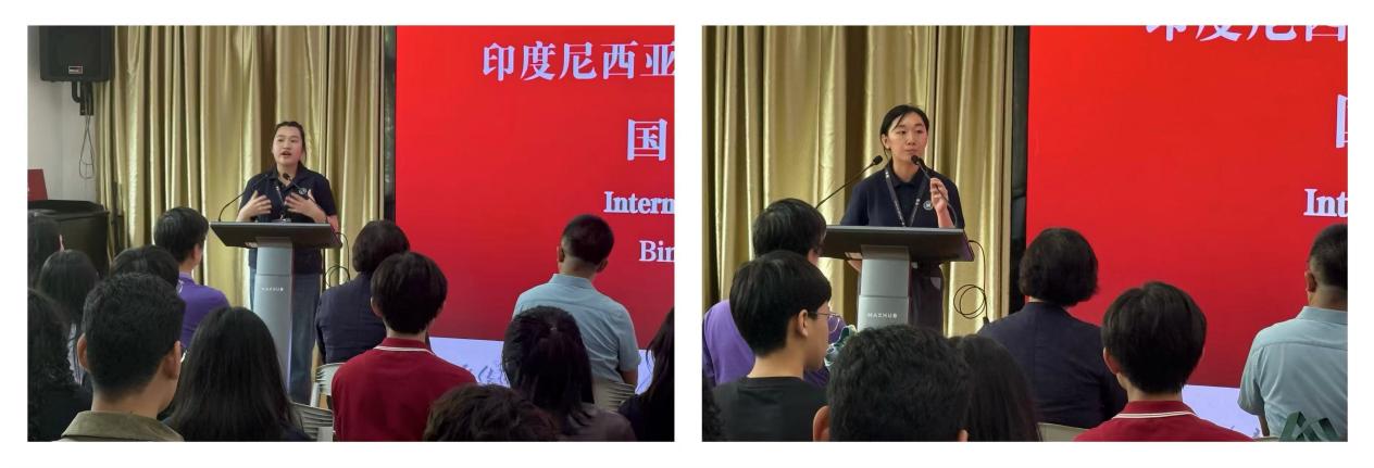 印度尼西亚籍本科生陈雪晶(Graciella Queenetha Chen)与曾婉歆(Joeycelyn Chen)分别发言,分享了她们在老王磁力 的学习和生活体验,以及所感受到的友好与包容氛围。她们特别强调了学习的重要性,并鼓励在场的同学们珍惜这段宝贵的时光,勤奋学习,不断提升自我,为未来的发展奠定坚实的基础。