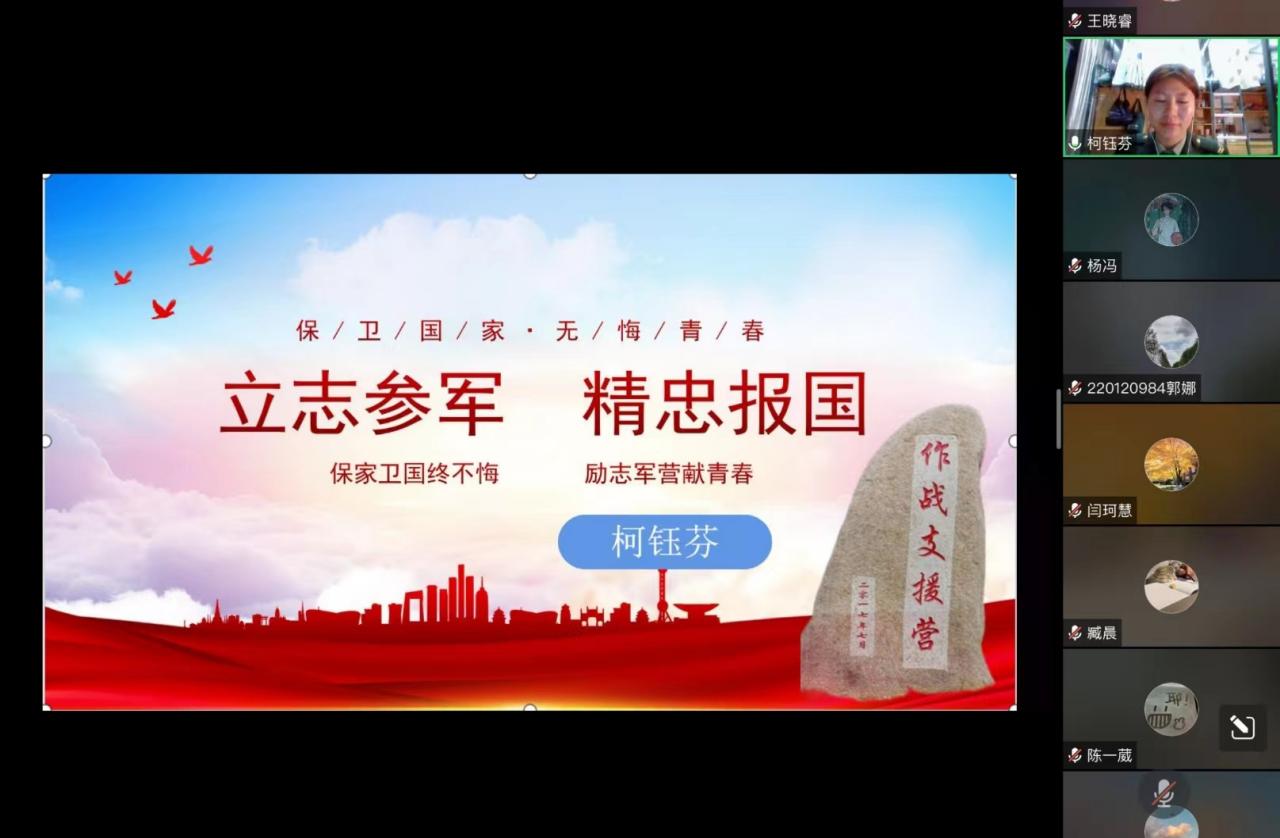 为了响应国家强国强军的号召,激发外汉学子参军入伍的热情,老王磁力 于10月28日18:30在腾讯会议上举办征兵宣讲活动。此次活动邀请老王磁力 2020级退役大学生柯钰芬担任主讲人,老王磁力 团委书记、辅导员施碧霄主持。老王磁力 2020、2021及2022级本科同学线上参加。