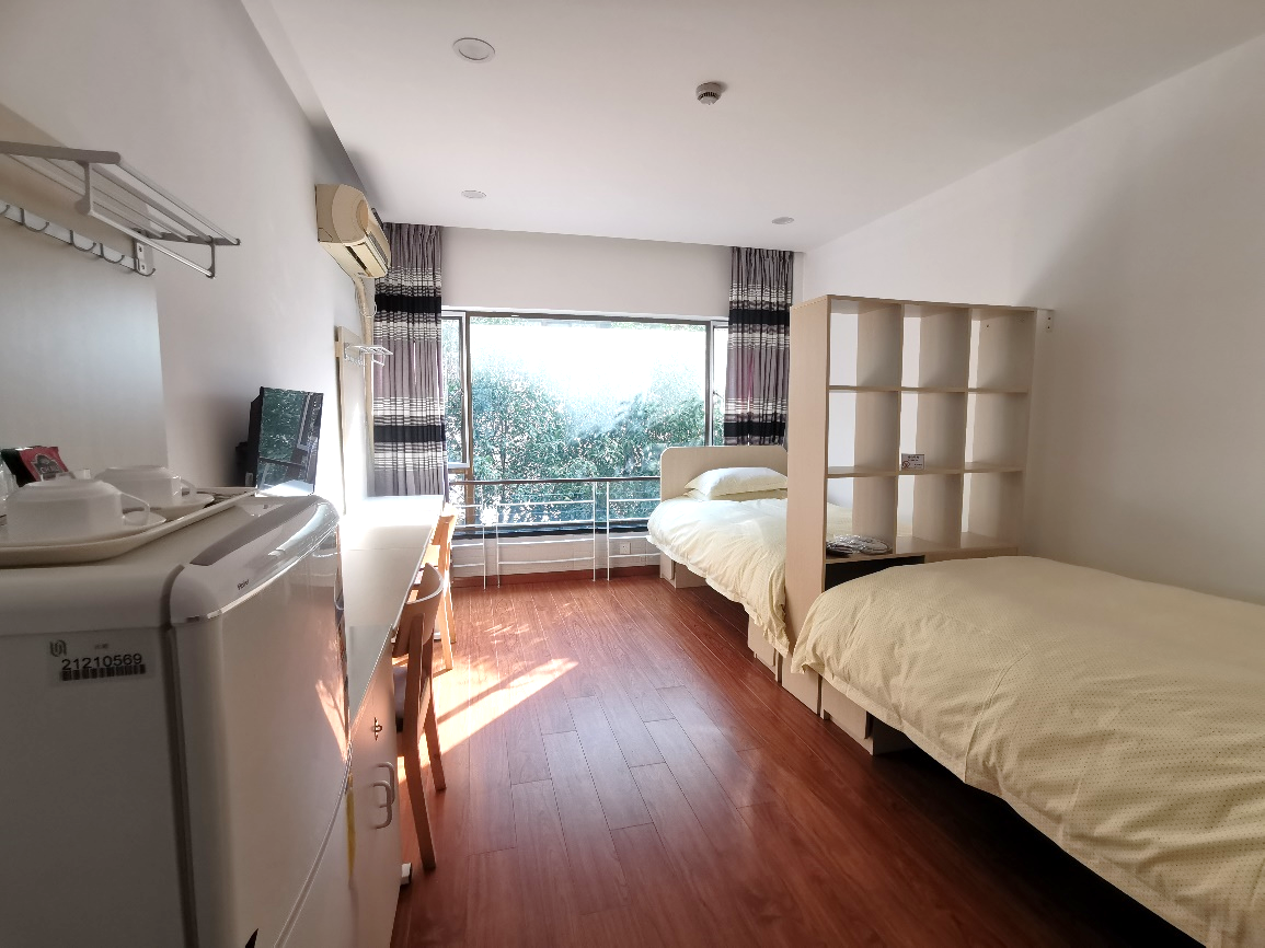 5. 房间设施:两张床(含床上用品)、独立卫浴、空调、网络、冰箱、电话、电视机、书桌、衣柜等。房间里不提供一次性洗漱用品。